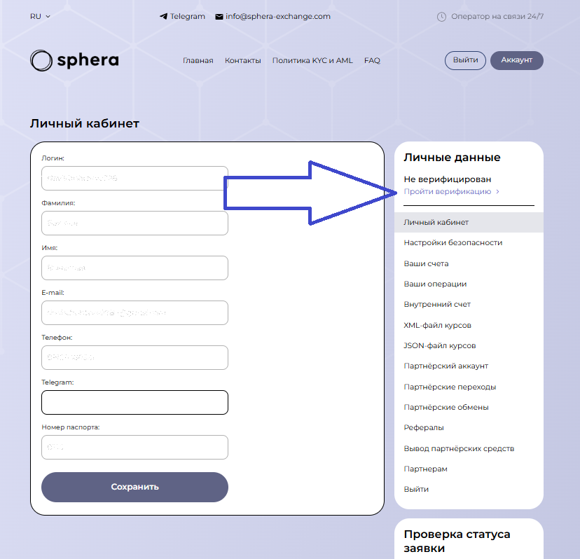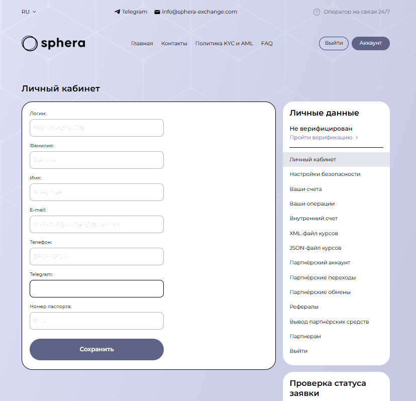 Провести обмен криптовалют через сервис Sphera-Exchange достаточно просто. Главное, сразу заполнить все поля. Это значительно ускоряет оформление заявок и заметно их прощает. Верификацию также стоит походить, чтобы в будущем никто не смог воспользоваться вашей учетной записью.