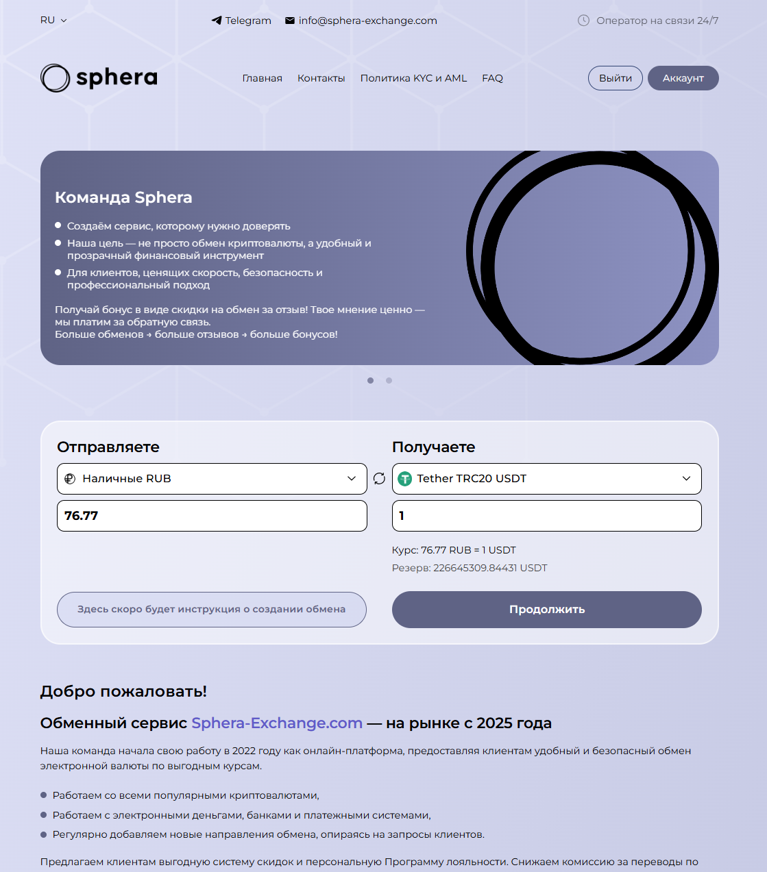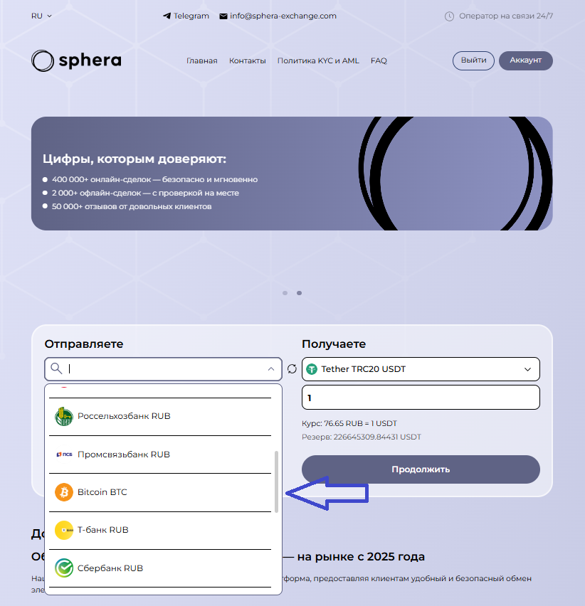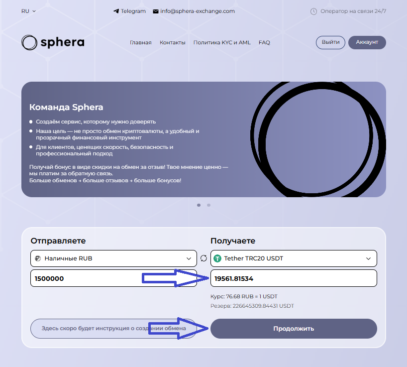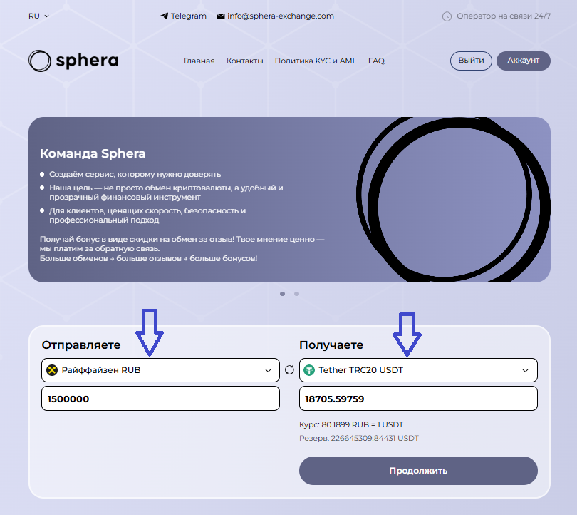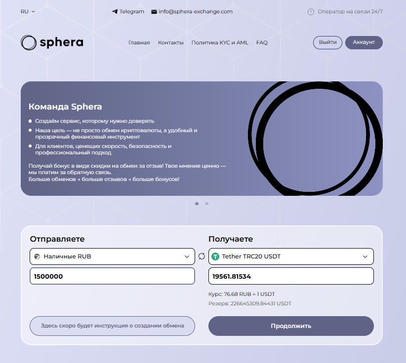 Обменный сервис Sphera Exchange работает с 2020 года и провела уже тысячи сделок. Отзывы о нем можно найти на таких независимых платформах, как: