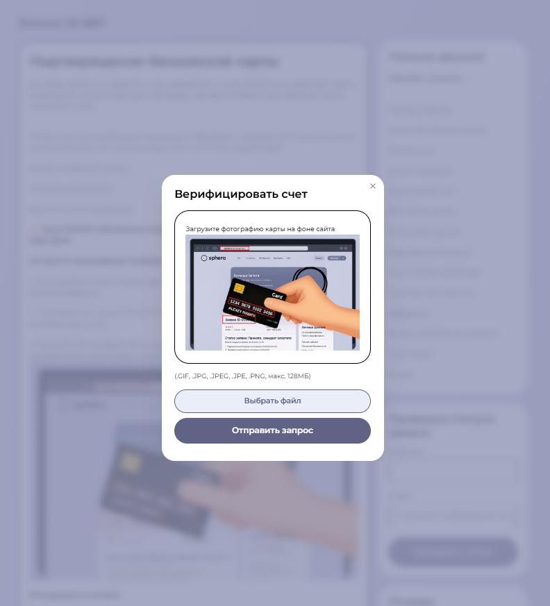 - 6. Загружаете фото банковской карты на фоне сайта (она должна соответствовать выбранному направлению).